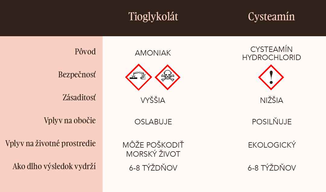 Zloženie: Aqua (Water), Cysteamine Hcl, Stearyl Alcohol, Sodium Hydroxide, Par-Affinum Liquidum (Mineral Oil), Ceteareth-25, Propylene Glycol, Cetyl Alcohol, Glycerin, Dimethicone, Disodium Edta, Guar Hydroxypropyltri-Monium Chloride, Parfum (Fragrance), Petrolatum, Polyquaternium-6, Al-Pha-isomethyl Ionone, Citronellol, Geraniol