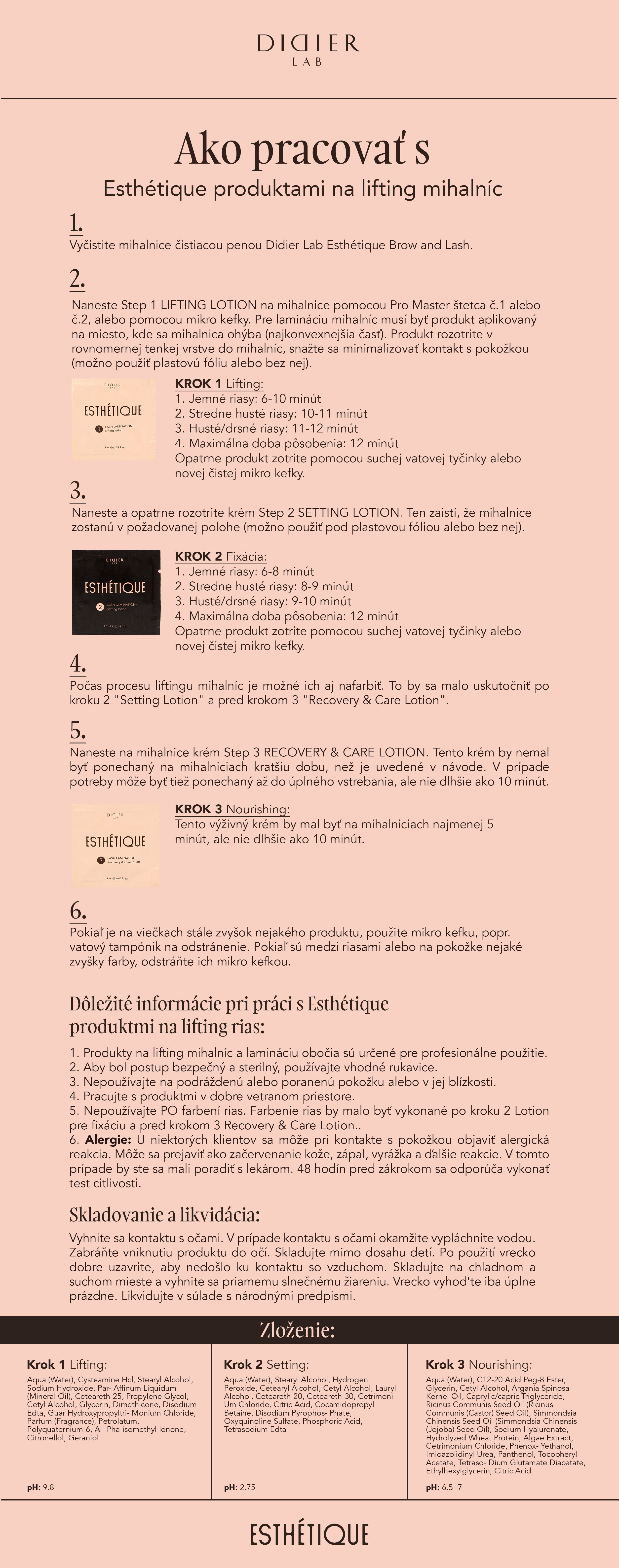 Sada obsahujúca 3 kroky Systému na lifting mihalníc