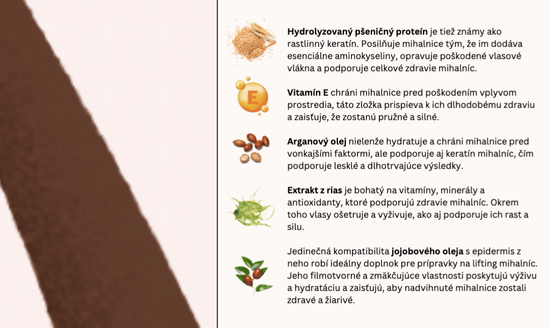Vyživuje a ošetruje mihalnice, pričom zaisťuje, že po procedúre zostanú zdravé, hydratované a dobre udržiavané.