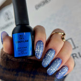 5. Naneste 1 alebo 2 tenké vrstvy vybraného hybridného laku Pop Star. Počet vrstiev závisí od požadovaného výsledného efektu. Vytvrdzujte v LED lampe 60sek/UV 2min. (pri vlnovej dĺžke lampy 395-405nm)